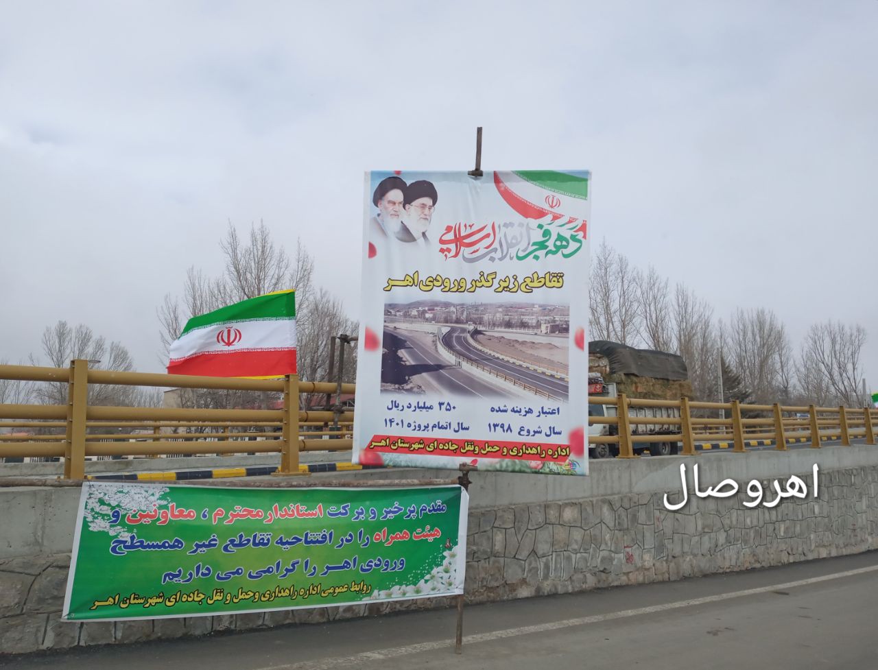 #اهروصال، به مناسبت دهه مبارک فجر با حضور زین العابدین رضوی خرم استاندار آذربایجان شرقی و جمعی از مسئولان استانی و شهرستانی پروژه تقاطع غیر همسطح ورودی اهر و چندین طرح راهداری جمعا با هزینه ای بالغ بر ۲۵۰ میلیارد تومان اعتبار افتتاح و به بهره برداری رسید.