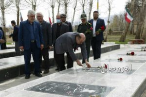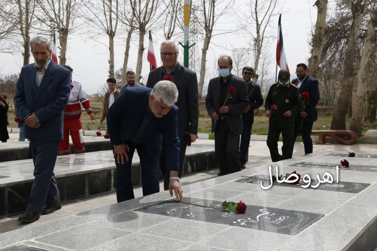 به گزارش پایگاه خبری #اهروصال، همزمان باآغاز هفته هنر انقلاب اسلامی ، با حضور مسئولان و هنرمندان شهرستان اهر مراسم غبار روبی و عطر افشانی مزار شهدای این شهرستان بزگزار شد.