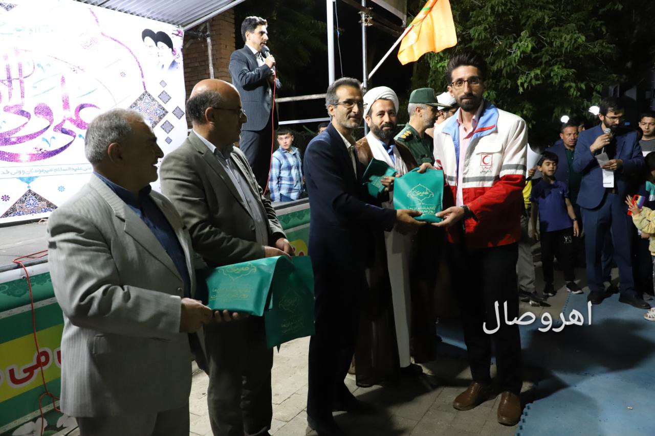 به گزارش پایگاه خبری #اهروصال، مراسم جشن بزرگ عید غدیر خم با حضور آیت الله جواد حاجی زاده امام جمعه اهر، سرهنگ پاسدار سیفی فرمانده سپاه ناحیه، سرهنگ آقاپور فرمانده انتظامی، روسای ادارات فرهنگ و ارشاد اسلامی، ورزش و جوانان، هلال احمر، تبلیغات اسلامی و سایر مسئولان و آحاد مختلف مردم خصوصا خانواده شهدا، بسیجیان، بسیج اصناف، بازاریان و… شهرستان اهر با برنامه های متنوع جنگ شادی، نقاشی و عکاسی غدیر، ایستگاه صلواتی با توزیع احسان و شربت، نورافشانی و اهدای جوایز ویژه عیدانه، نمایش، حرکات نمایشی و ورزشی، مولودی، شعر و موسیقی و مسابقات معنوی و فرهنگی در جوار شهدای گمنام پارک شیخ شهاب الدین اهری برگزار شد.