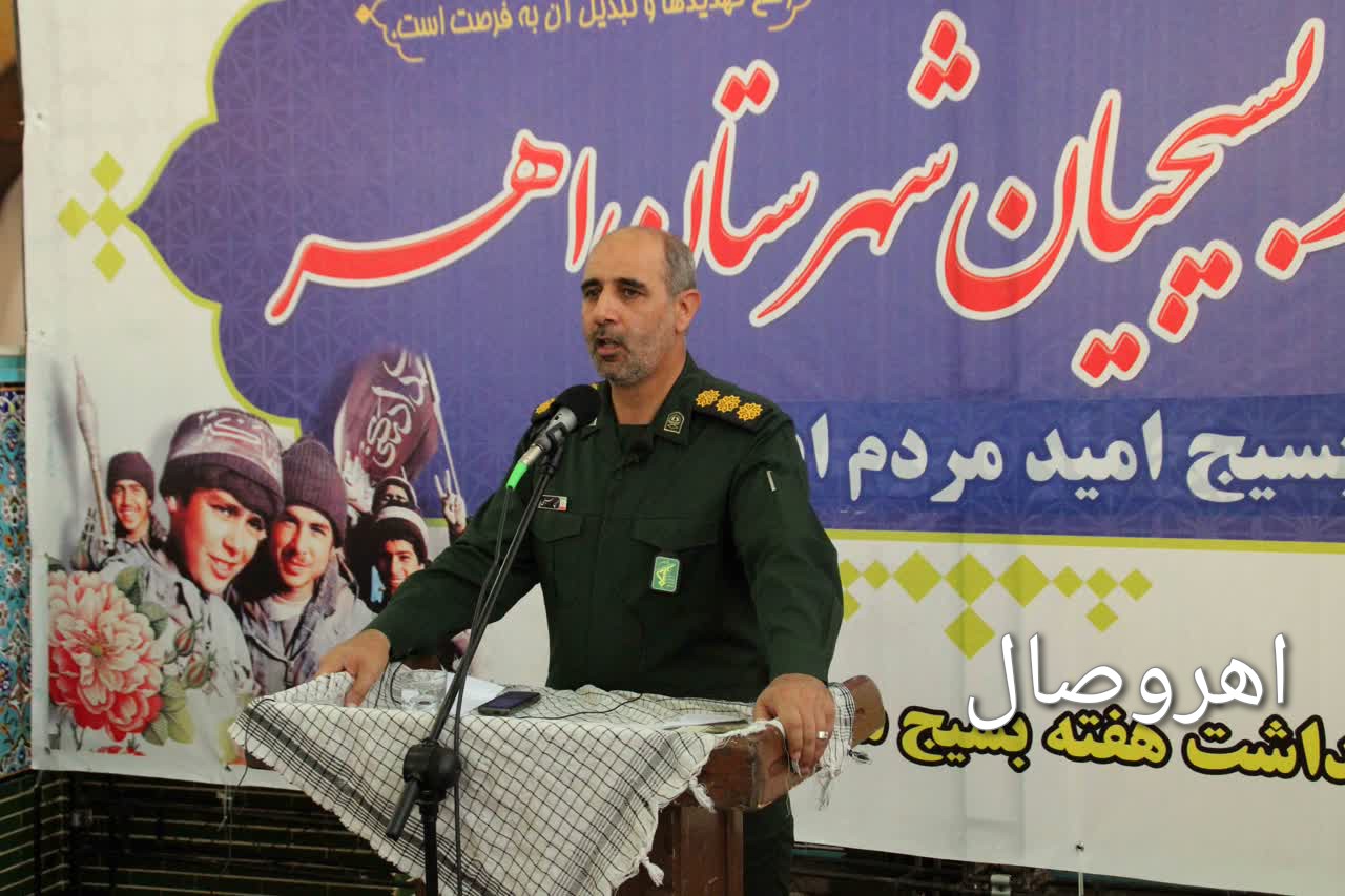 سرهنگ پاسدار حسن سیفی، فرمانده سپاه اهر نیز در این مراسم بر ضرورت ترویج تفکر بسیج در جامعه تأکید کرد و گفت: هم اکنون در عملیات طوفان الاقصی مبارزان حماس و رزمندگان اسلام با تفکر بسیجی در مقابل جنایات اسرائیل ایستاده است.
