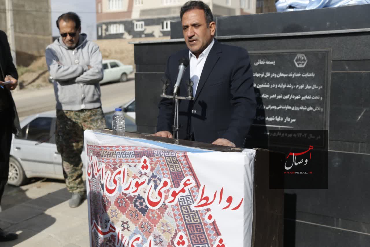 به گزارش #اهروصال، به مناسبت گرامیداشت چهارمین سالگرد شهادت سردار حاج قاسم سلیمانی و سالروز میلاد با سعادت حضرت فاطمه زهرا (س) با حضور مسئولان شهرستان اهر مراسم رونمایی از تندیس شهید سردار سلیمانی در ورودی بزرگراه شهید سلیمانی (کمربندی غربی ) برگزار شد و همچنین به مناسبت روز مادر ، از مقام مادر شهید مفقودالاثر صابر رضائیان با اهدای لوحی تقدیر شد.