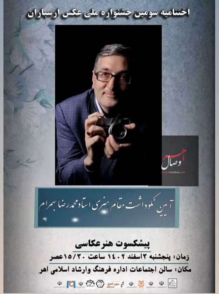 در آیین اختتامیه سومین جشنواره سراسری عکس ارسباران از مقام هنری استاد محمدرضا بهمرام، تجلیل و قدردانی می شود.