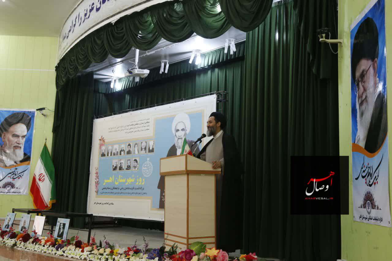 وی در ادامه به برگزاری روز شهرستان اهر و گرامیداشت یاد و نام آیت الله حاج حسین نجفی اهری که از علمای مجاهد و مبارز شیعه در منطقه ارسباران و شهرستان اهر است اشاره کرد و گفت: نقش برجسته آیت الله نجفی اهری در طول زندگی پر برکت و علمی، مبارزات در دوران مشروطیت و حمایت قاطع از مبارزات رهبر کبیر انقلاب اسلامی در دوران پهلوی بسیار تاثیرگذار بود و از آثار ایشان “حدیقه الاحباب” و”شجره طوبی” می باشد.
