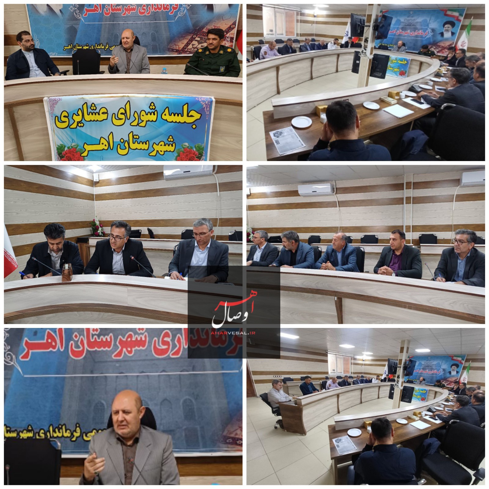 گفتنی است: جلسه شورای عشایری شهرستان اهر با محوریت کوچ بهاره عشایر به ریاست فرماندار شهرستان اهر و با حضور عنایتی رئیس اداره مطالعات اداره کل امور عشایر استان، صادق زاده رییس اداره امور عشایر شهرستان، بخشداران و مسئولین ادارات عضو شورای عشایری این شهرستان برگزار گردید.