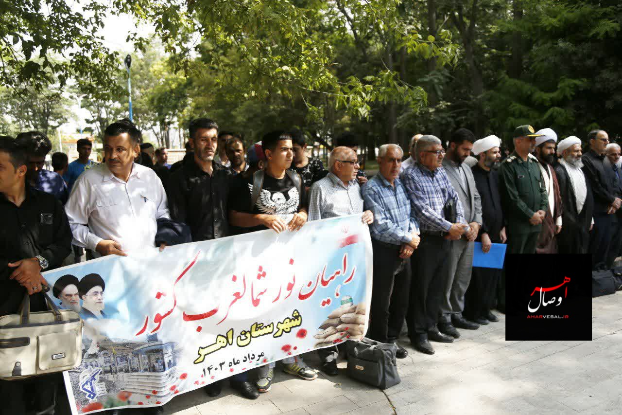 به گزارش #اهروصال، با حضور امام جمعه شهرستان اهر، فرمانده سپاه ناحیه اهر و جمعی از مسئولان شهرستان اهر مراسم اعزام کاروان راهیان نور به استعداد ۱۵۰ بسیجی در قالب ۳ دستگاه اتوبوس برای بازدید از مناطق عملیاتی شمال غرب کشور اعزام و در برنامه شهدای تبریز و مزار شهید آیت الله آل هاشم نماینده ولی فقیه در استان آذربایجان شرقی حضور یافتند.