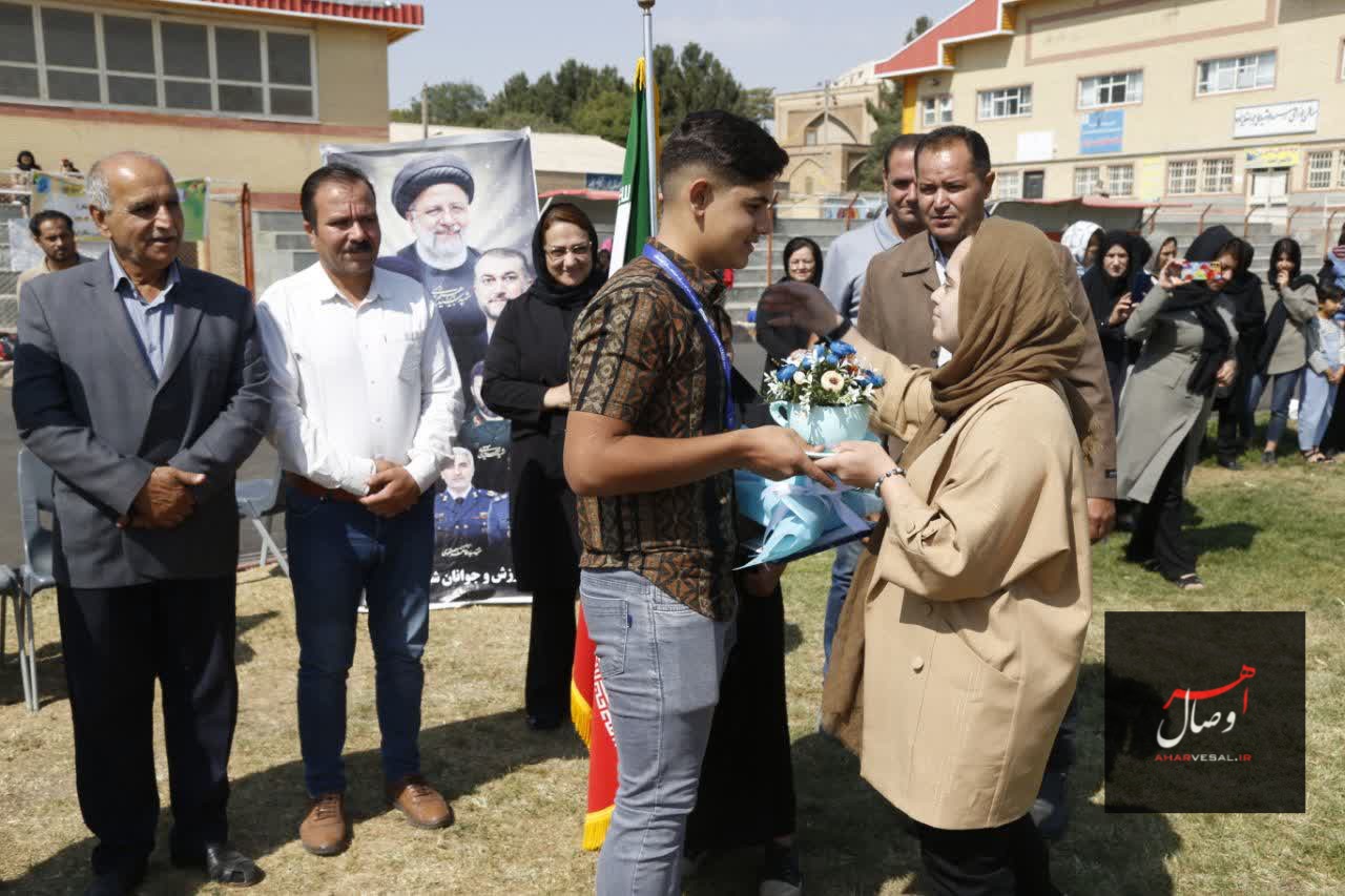 - به گزارش #اهروصال، به همت اداره ورزش و جوانان، کانون ورزشکاران بسیج و… شهرستان اهر با حضور مسئولان این شهرستان به مناسبت گرامیداشت هفته دفاع مقدس مسابقات دوستانه فوتبال “یادواره شهدای ورزشکار بسیجی شهرستان اهر” با شرکت تیم های پاس اهر و مهدیه تبریز در رده های سنی زیر ۱۴، ۱۲ و ۱۰ سال جوانان برگزار شد و در ادامه ضمن تقدیر از “عرفان آزادی” مدال آور طلای در بازی های قهرمانی فوتسال کشور در طرقبه مشهد که اولین طلای خود را به مقام شامخ شهید والامقام هاشم کریم پور اهدا کرده بود به همراه تیم قهرمان در مسابقات دوستانه فوتبال یادواره شهدای ورزشکار بسیجی شهرستان اهر تجلیل شد.