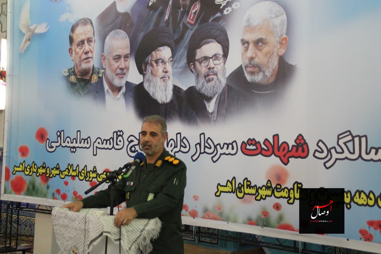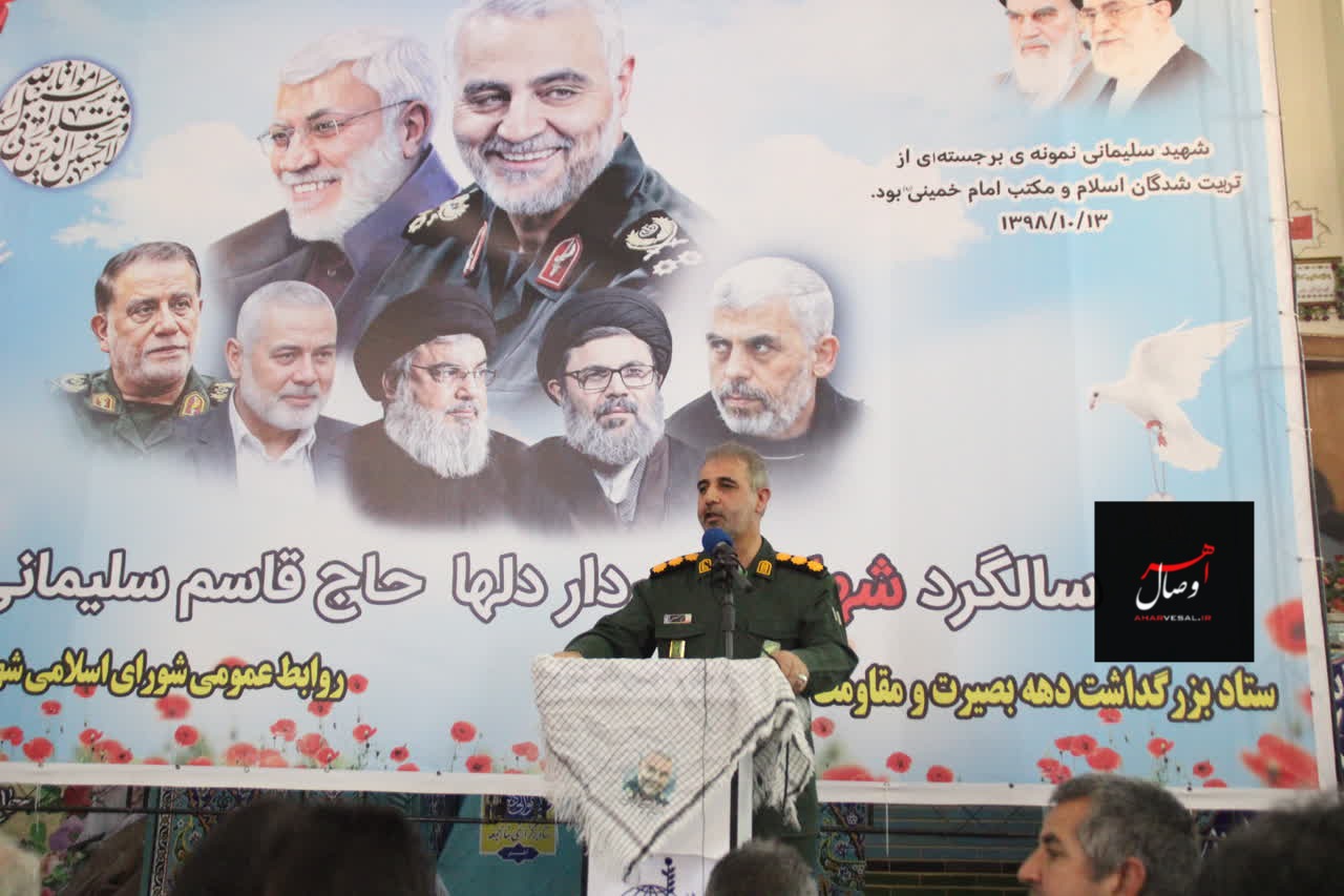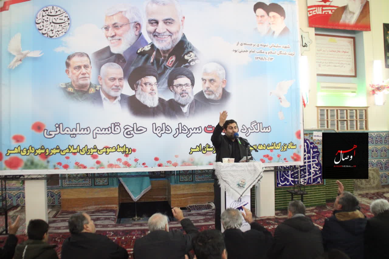 به گزارش #اهروصال، با حضور سرهنگ پاسدار کاظم قلعه معاون هماهنگ کننده سپاه عاشورا، آیت الله شیخ جواد حاجی زاده امام جمعه اهر و نماینده مردم آذربایجان شرقی در مجلس خبرگان رهبری، نماینده مردم اهر و هریس در مجلس، فرمانده سپاه و جمعی از مسئولان استانی و شهرستانی مراسم گرامیداشت سالروز شهادت سردار دلها حاج قاسم سلیمانی در محل مصلی نمازجمعه شهرستان اهر برگزار شد.