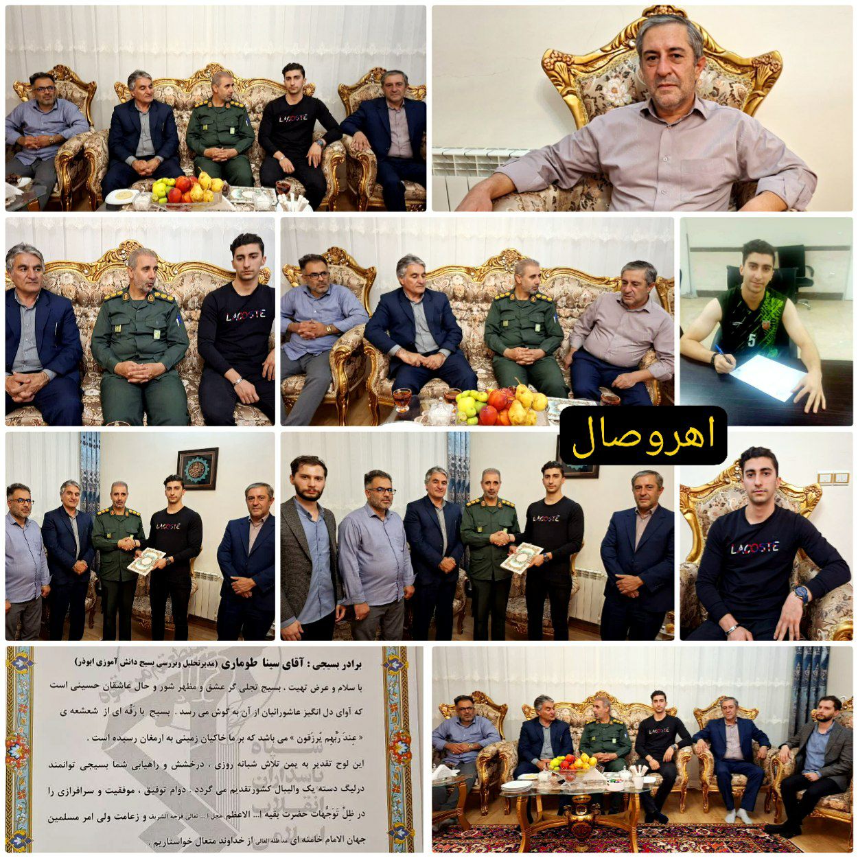 حضور فرمانده سپاه ناحیه اهر و علیرضا اکبرپور مدیر آموزش و پرورش اهر در منزل والیبالیست جوان اهری سینا طوماری