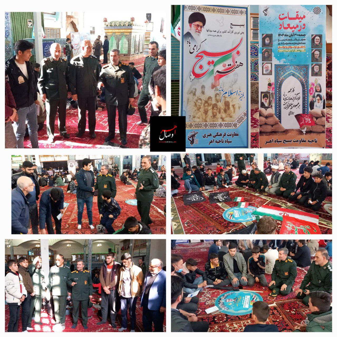 میقات صالحین حضور حلقه های تربیتی سپاه ناحیه اهر در میعادگاه نماز جمعه در روز ۳٠ آبان ماه به مناسبت گرامیداشت هفته بسیج مستضعفین برگزار شد