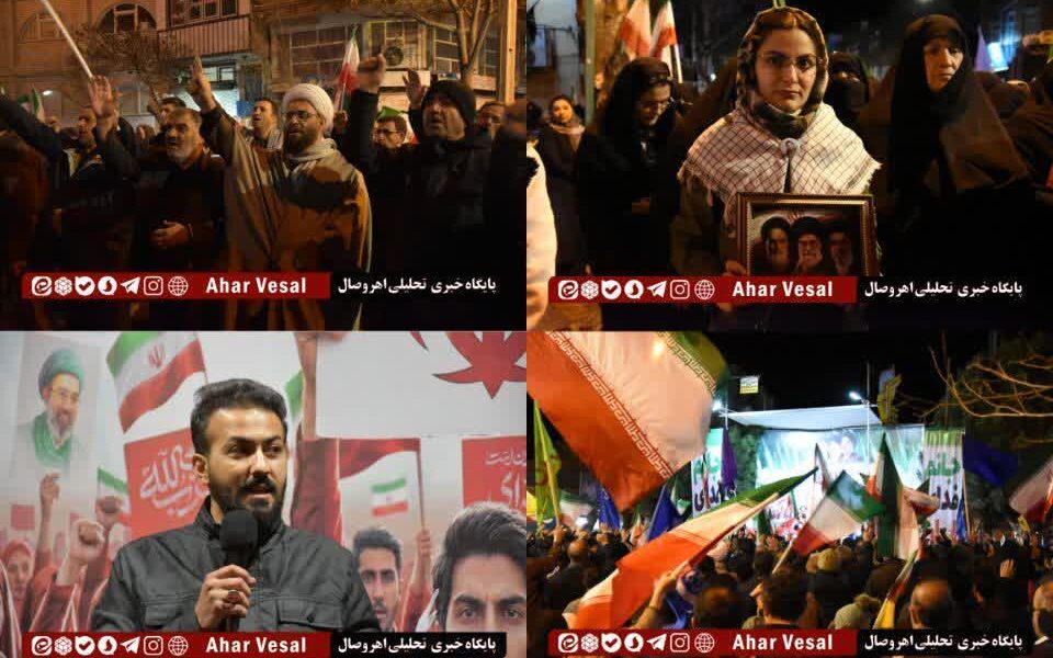 امشب هم اهالی ولایت مدار شهرستان اهر استان آذربایجانشرقی، مانند شبهای گذشته در سی و هشتمین شب حضور در میدان، بر حمایت از مدافعان وطن، ولایت، محکومیت جنایتهای آمریکایی _ صهیونیستی و نبرد با استکبار تأکید کردند.